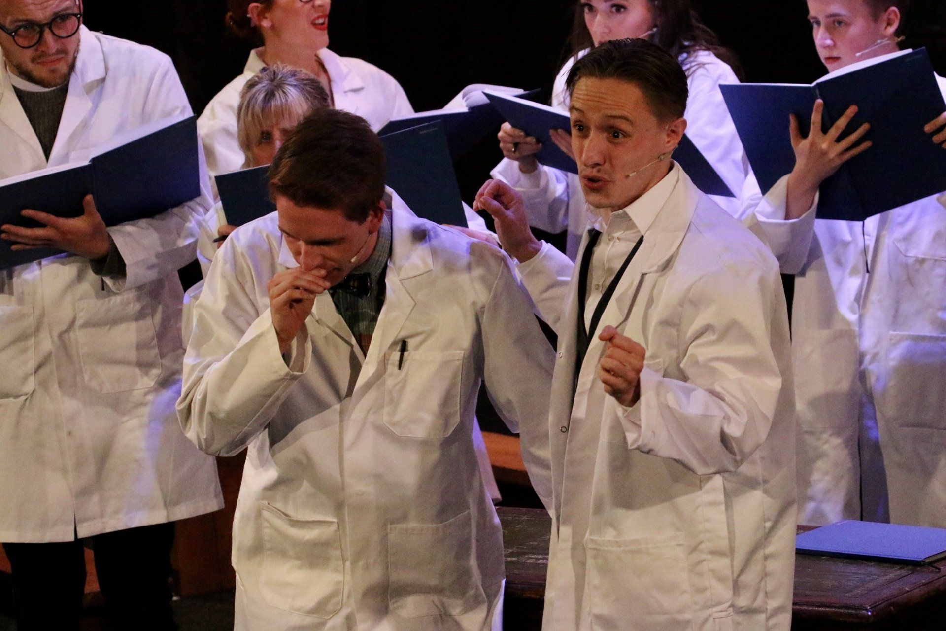 We followed the story of Dr. Frederick Frankenstein and his zany sidekicks as he learned about his grandfather's crazy experiments.